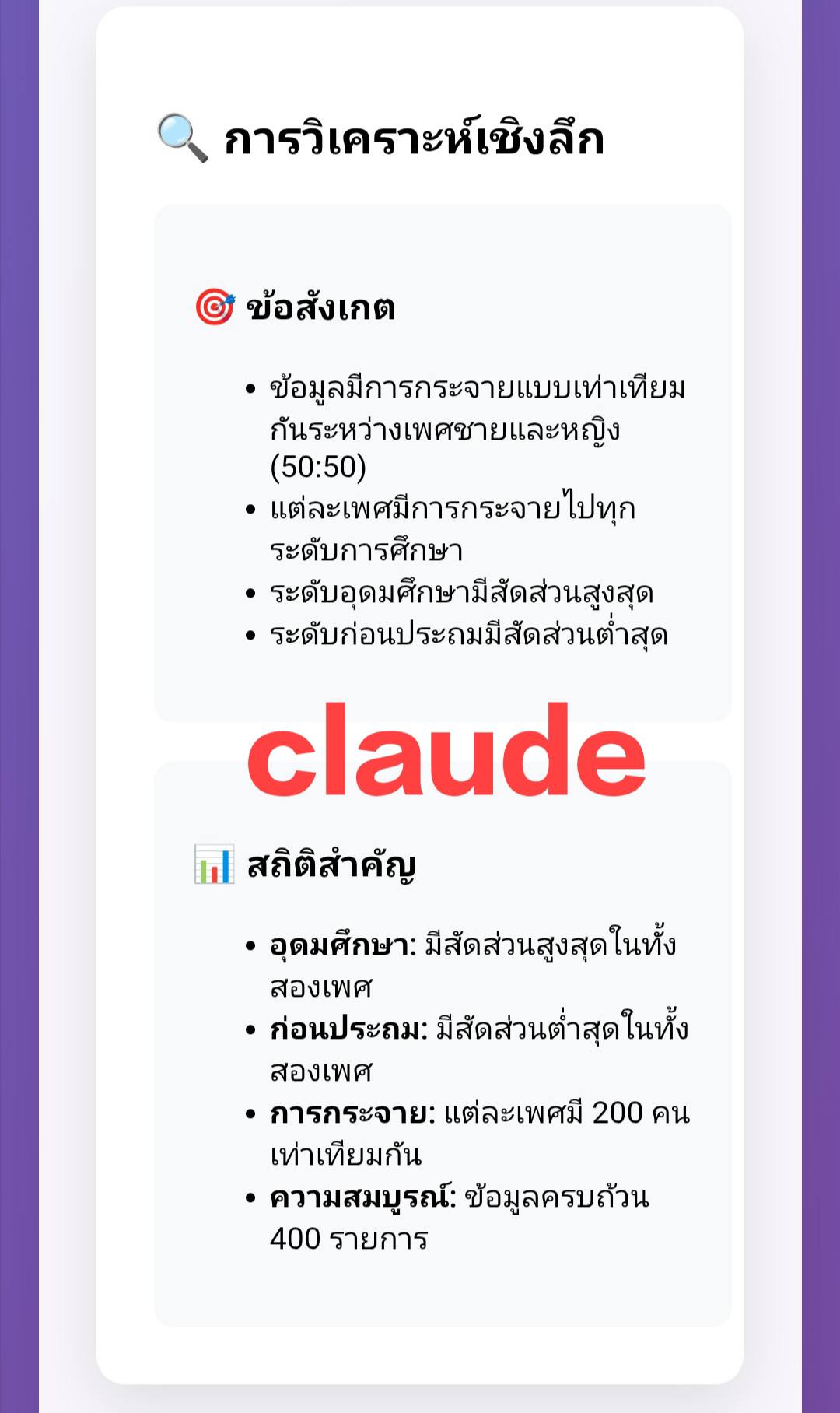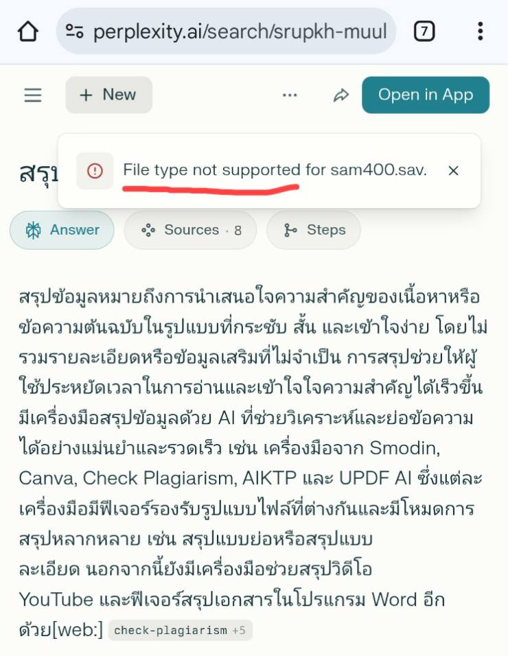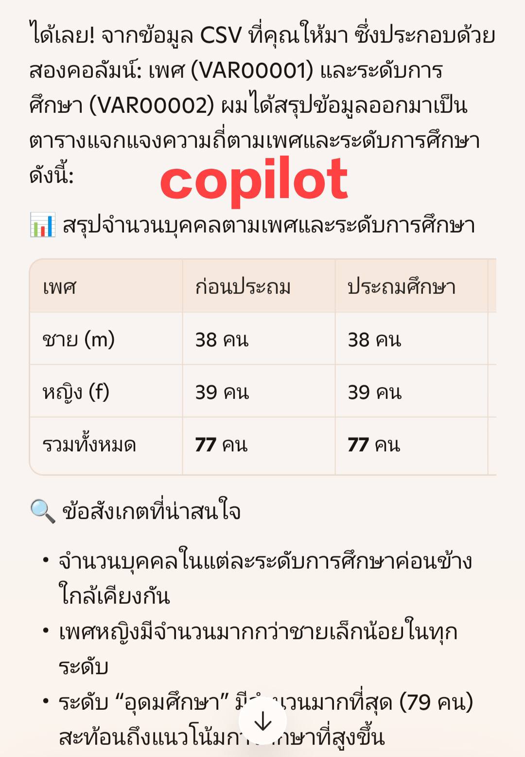 แฟ้ม .sav หรืออื่น ๆ ที่ เอไอ ยังไม่รองรับ อไอ มีความสามารถในการ generate ข้อมูลมาให้เราอย่างเหลือล้น แล้วพบว่า เราสามารถอัพโหลดข้อมูล เพื่อประกอบการประมวลผลไปร้วมกับ prompt ในหลายรูปแบบ แต่บางรูปแบบ เช่น .sav ซึ่งมีลักษณะเฉพาะที่ไม่มี library ของบริษัทผู้พัฒนา ((spss)) สนับสนุนในเอไอ ส่วนรูปแบบ .csv นั้น เอไอสามารถเข้าใจได้ ทั้งแบบแนบต่อท้ายโพสต์ไปกับเนื้อหาใน prompt หรือ upload file แต่มีข้อจำกัดเรื่องจำนวนรายการ เช่น 400 รายการ (taro yamane) พบว่า เอไอที่ได้ทดสอบ 5 ตัว ไม่มีตัวใด สามารถประมวลผลได้อย่างมีประสิทธิผล