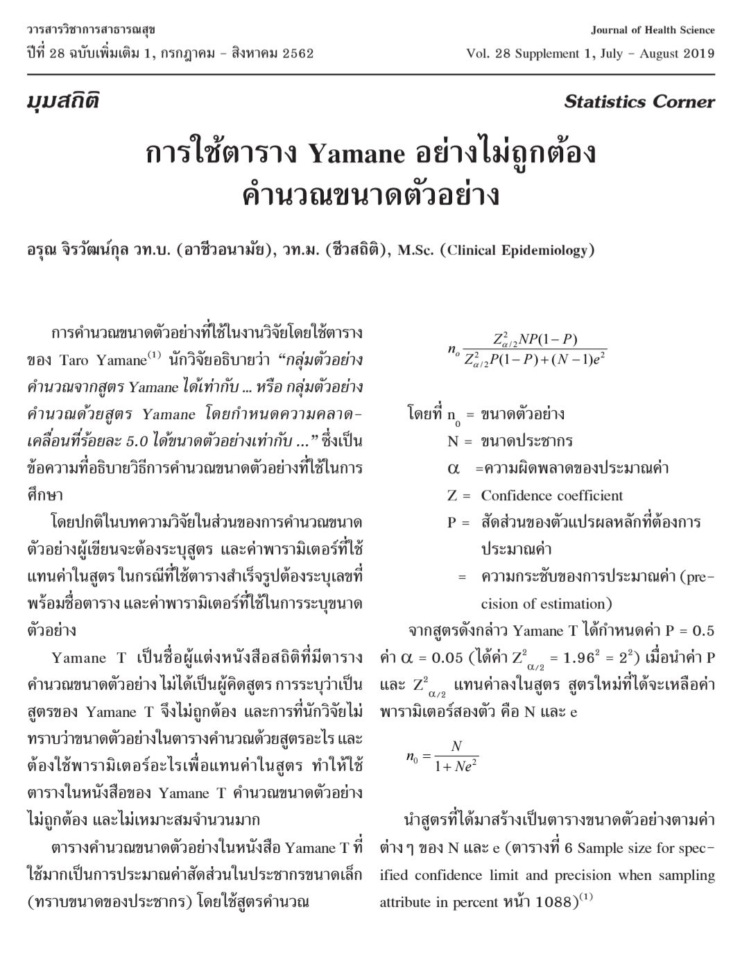 ใช้ Taro Yamane อย่างไม่ถูกต้อง โดย อรุณ จิรวัฒน์กุล